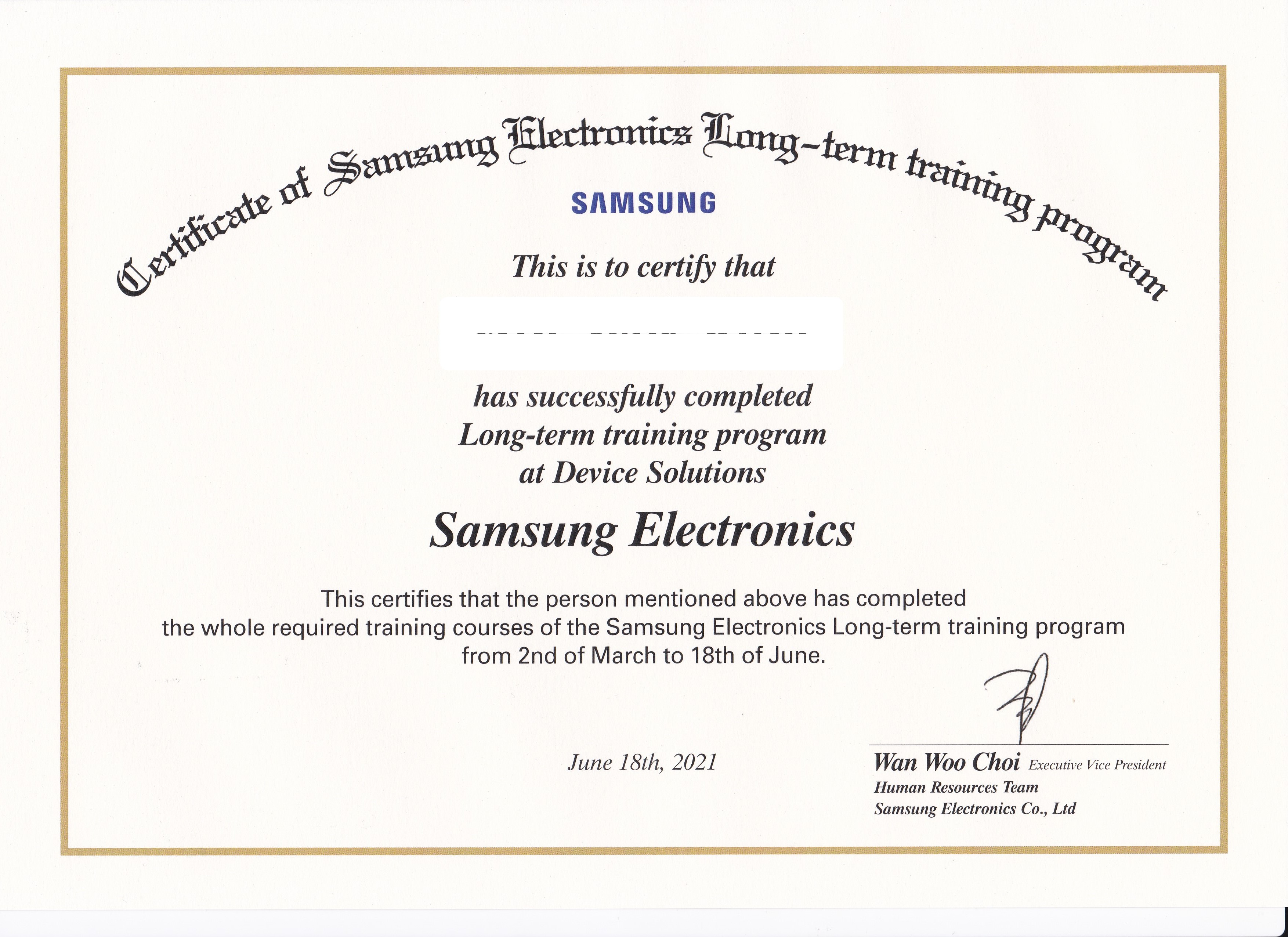 2021.03.02 ~ 2021.06.18 총 16주 동안 삼성전자 DS부문의 S.LSI 사업부에서 장기 현장실습을 진행했다.