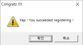 실행화면 3 위와 같이 프로그램을 초기에 실행시켰을 때와 같은 메시지 창이 출력된다. 확인 버튼을 누르면 다시 실행화면 2와 같은 상태로 돌아간다. 이제 아무 키나 입력하고 Register me!를 눌러보자.