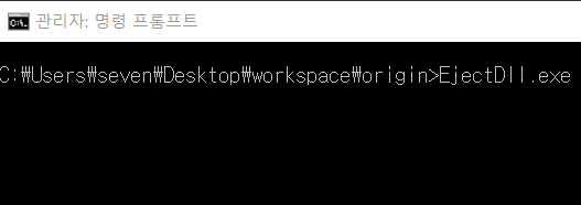 myhack.dll이 인젝션된 상황 cmd창에서 다음과 같이 명령어를 입력하여 EjectDll.exe를 실행한다.