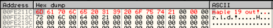 maple 19 out! 으로 패치 (2) 다른 메모리에 문자열을 추가하고 해당 주소를 push하도록 변경