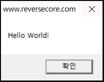 HelloWorld.exe 위와 같이 Hello World!라는 문구를 출력하는 메시지 박스가 출력되는 것을 확인할 수 있다. 이제 위 exe 파일을 디버거를 이용해 그 구조를 살펴보겠다.