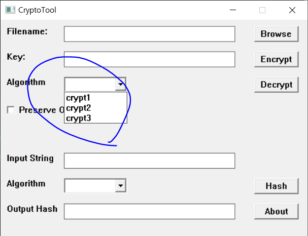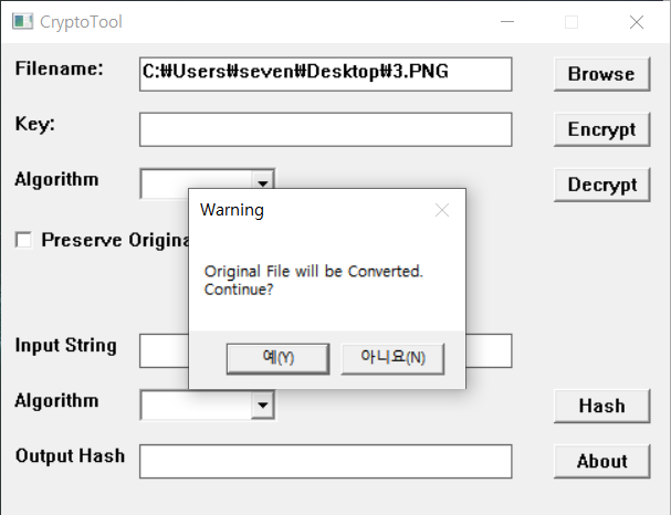 CryptoTool.exe 실행하면 다음과 같은 윈도우가 나타난다.