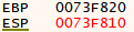 그림으로 EBP, ESP를 도식화하면 다음과 같다. (단, 스택은 거꾸로 자라므로 ESP가 위로 올라가면 주소는 줄어든다.)