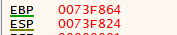 초기 ESP, EBP 값 이때 ESP에 저장된 값은 main()의 실행이 끝난 후 돌아갈 리턴 주소임을 알고 있자. 현재 상태에서 PUSH EBP를 실행하면 스택에 EBP값이 저장된다. 이렇게 저장하는 이유는 함수가 실행되기 이전의 EBP값을 백업하기 위함이다. 이후에 MOV EBP, ESP를 통해 ESP의 값을 EBP에 옮긴다. 이후에는 main 함수가 끝날 때까지 EBP 값은 고정된다. 스택 창을 마우스 우클릭에서 EBP 따라가기, ESP 따라가기 등을 선택하여 EBP, ESP 관점에서 스택을 볼 수도 있다.
