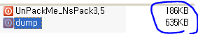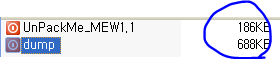 크기 비교 위와 같이 unpack 한 dump 파일의 크기가 기존의 파일보다 줄어든 것을 확인할 수 있다.