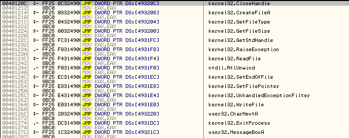 IAT 끝 : 00493854 시작 부분을 RVA로 변환하면 ImageBase 값을 뺀 93168이 되고, IAT 크기는 00493854 - 00493168 =